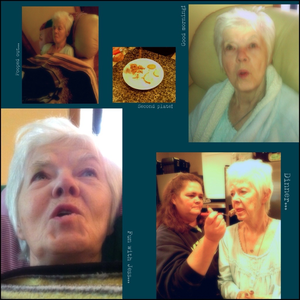 That being said, I got a text from Susie tonight that blew my mind. Mom was on her second plate of meatloaf, potatoes, and carrots. Yes, REAL FOOD. I just told someone today that I doubted she would ever eat “normally” again, and whad’ya know – she proved me wrong! We’ll see if it’s a trend or a fluke, but I am stunned! Who would have ever thought…