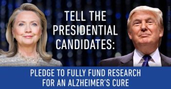 With the general election less than four months away, we must let BOTH candidates know we expect them to make ending Alzheimer’s a top priority. This is a bipartisan issue – Alzheimer’s affects all of us regardless of political affiliation! We are not the red party or the blue party, we’re the Alzheimer’s party and we will be heard!